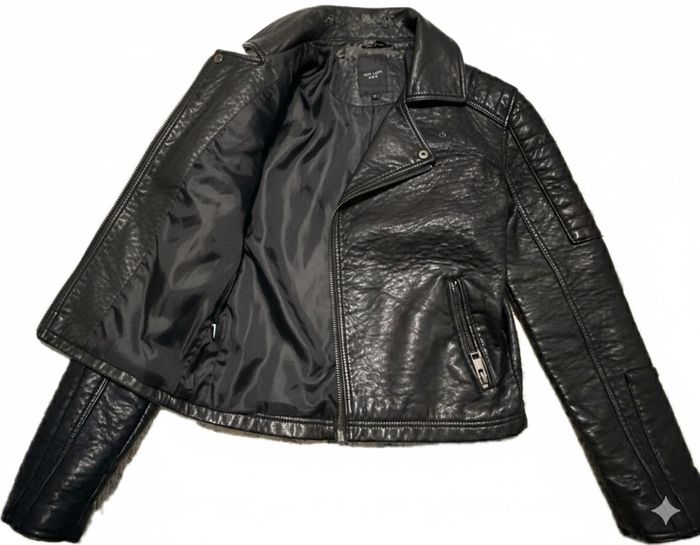 veste style biker de la marque New Look Men, taille XS. Parfaite pour un look rock et urbain, avec des épaules matelassées, une fermeture éclair asymétrique, des poches zippées et une doublure intérieure en tissu synthétique noir. Couleur noire intense, matière en cuir synthétique (PU) qui donne un effet leather authentique. État général : d’occasion, portée plusieurs fois mais encore en bonne forme globale. Elle a un style vintage usé naturel grâce à son utilisation. Attention cependant aux défauts au niveau du col : il y a des signes d’usure visibles, avec des parties effilochées et écaillées (voir photos pour détails). Cela n’affecte pas la solidité de la veste, mais c’est à prendre en compte pour un achat en connaissance de cause. Idéale pour quelqu’un qui aime les pièces avec du caractère ou qui veut la customiser ! Prix négociable.N’hésitez pas à poser des questions ! #NewLook #VesteBiker #CuirSynthétique #TailleXS #ModeHomme