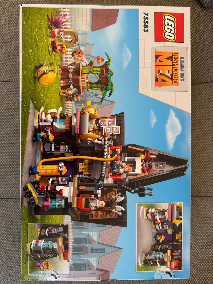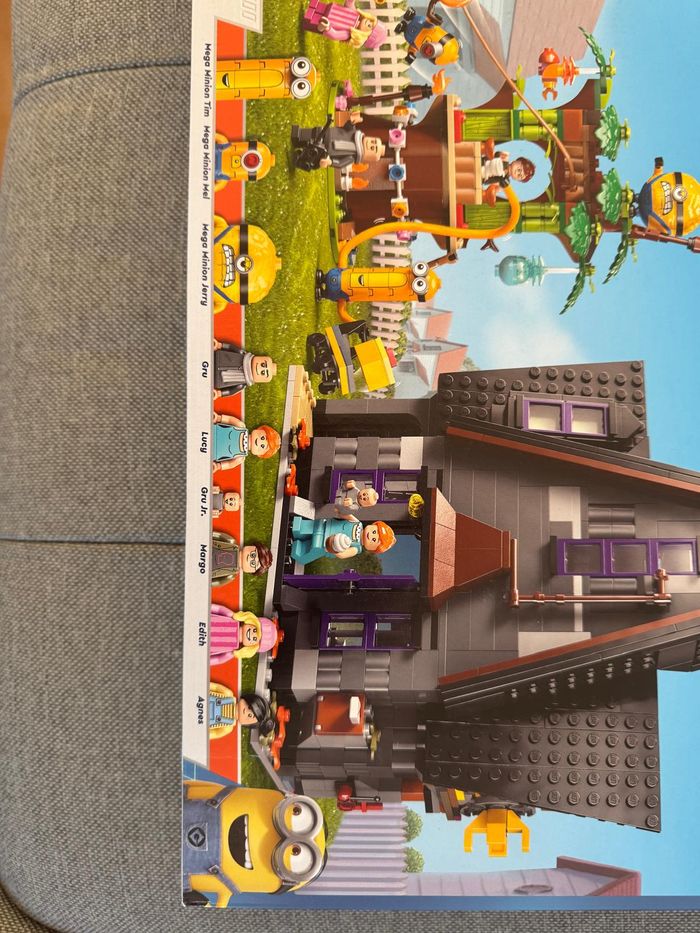 Comporte la maison de Gru avec son salon, cheminée, chambre fusée, laboratoire des Minions, la maison-arbre colorée avec tyrolienne, zone fête. Inclus : Gru, Lucy, Margo, Edith, Agnes, Bébé Gru + plusieurs Mega-Minions Mel, Jerry, Tim.