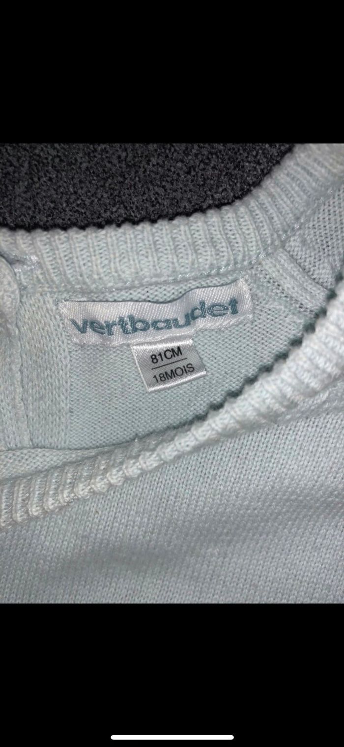 Pull verbaudet bleu clair avec dessin ourson blanc Boutons à l’arrière 18mois En très bon état