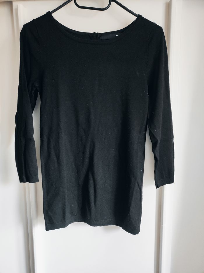 Pull fin et près du corps. Manches 3/4. Porté, en bon état, il peut y avoir quelques légères bouloches.