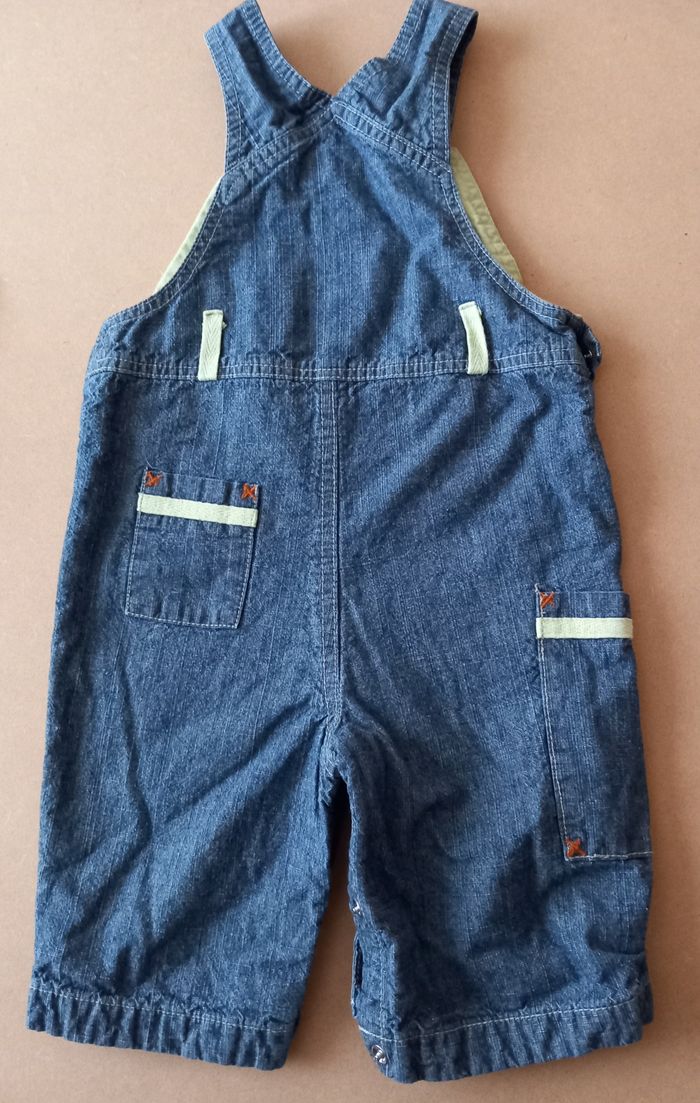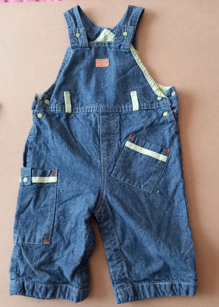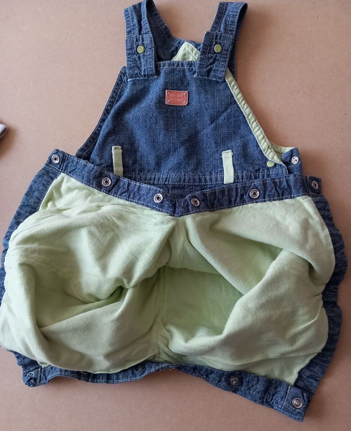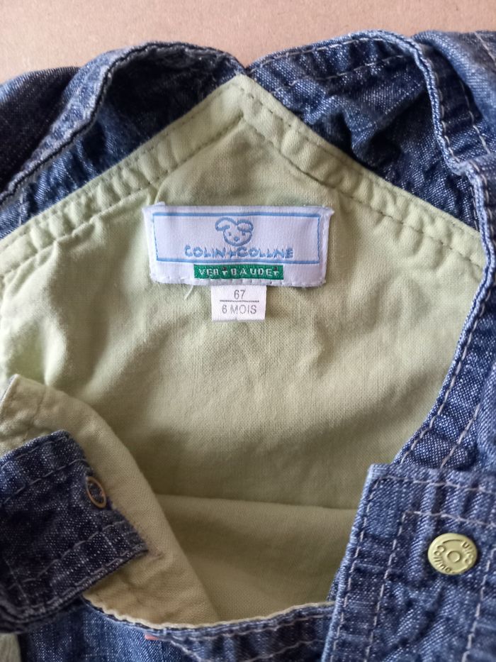 Salopette jean bébé taille 6 mois VERT BAUDET "Colin-Coline" fermeture pressions entre jambes doublure jersey vert 100 % coton Voir autres lots