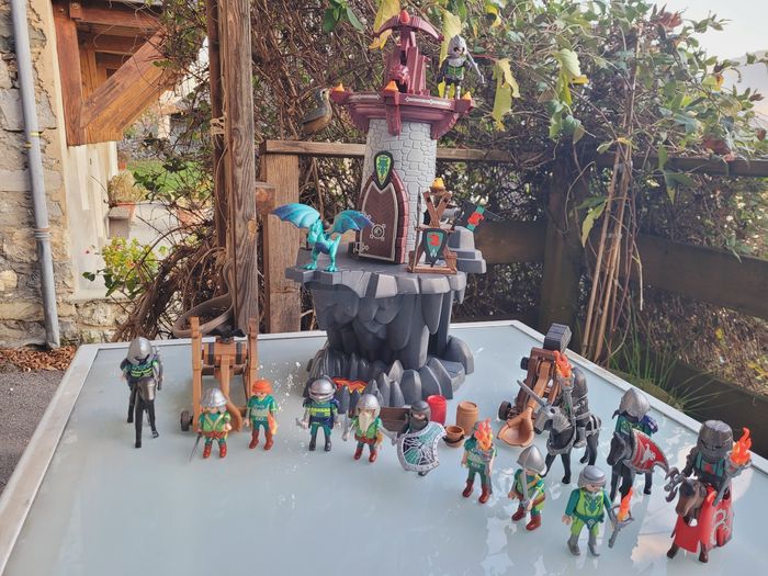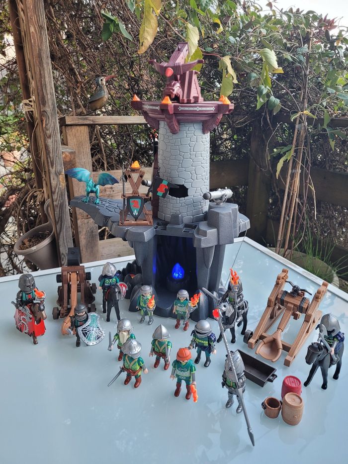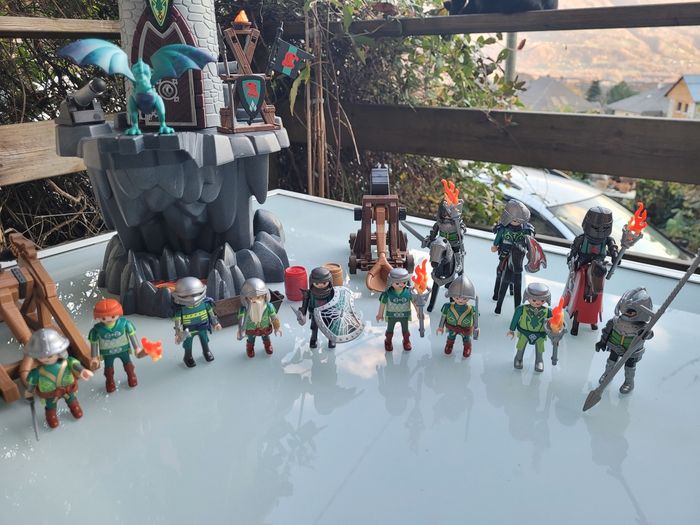 Très gros lot Playmobil chevalers 🛡 Donjon du dragon 🐉 vert 4836 + 13 chevaliers + accessoires - photo numéro 1