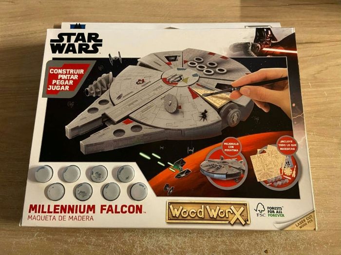 Maquette en bois a peindre Star Wars, le faucon Millenium