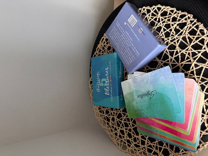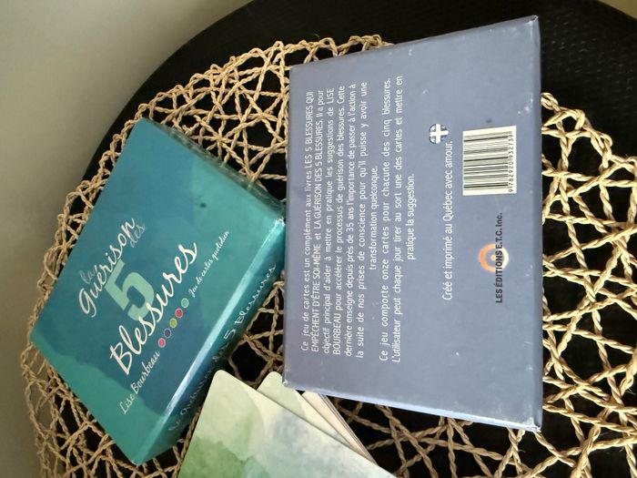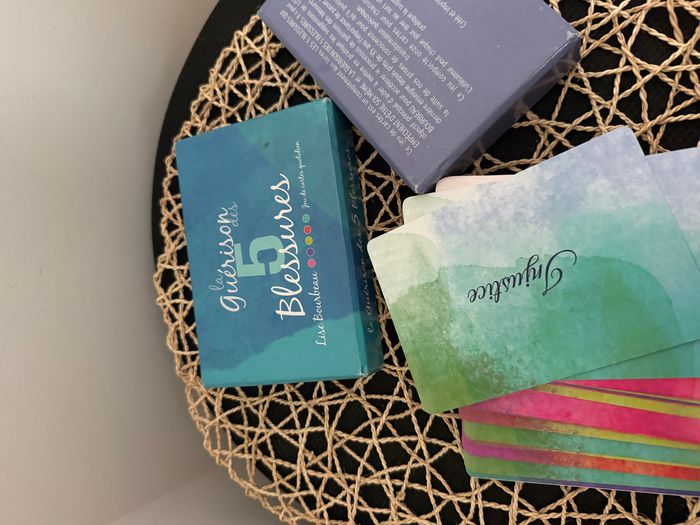 Voici un nouveau jeu de cartes qui est un véritable complément aux livres « Les 5 blessures qui empêchent d'être soi-même » et « La guérison des 5 blessures ». Il a pour objectif principal d'aider à mettre en pratique les suggestions de Lise Bourbeau pour accélérer le processus de guérison des blessures. Cette dernière, qui a vendu 4.5 millions de livres enseigne depuis près de 35 ans l'importance de passer à l'action à la suite de nos prises de conscience pour qu'il puisse y avoir une transformation quelconque. Ce jeu comporte onze cartes pour chacune des cinq blessures. L'utilisateur peut chaque jour tirer au sort une des cartes et mettre en pratique la suggestion. Coffret fabriqué au Québec.