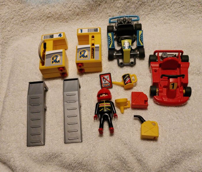 lot ancien Playmobil Geobra kart rampe bidon jerricane pompe à essence entonnoir diverses années - photo numéro 1