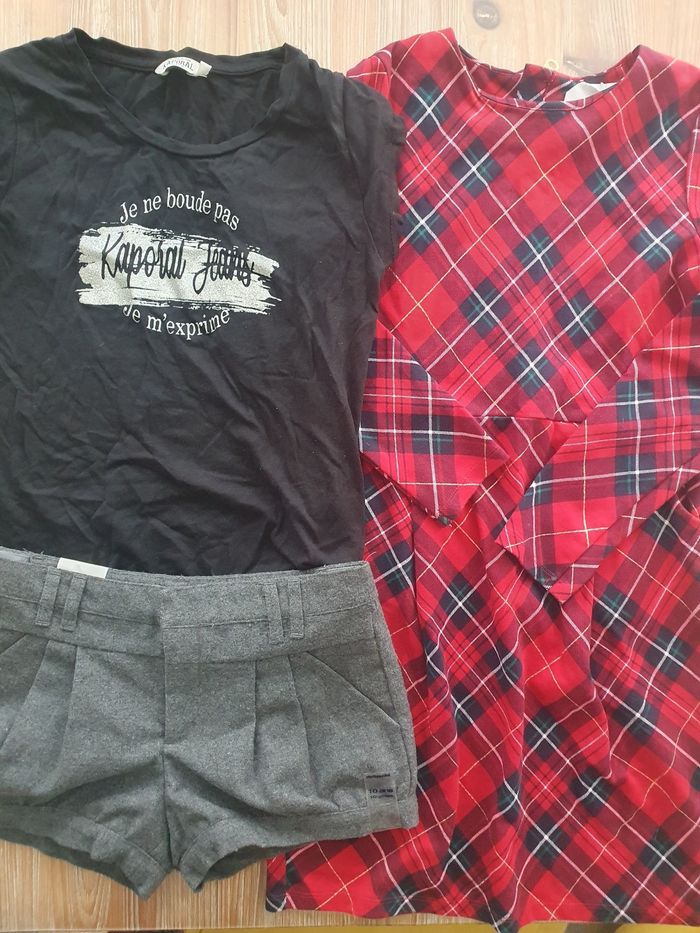 Bonjour, Je vends 3 articles en 10ans pour filles. 1 short d'hiver neuf marque Vertbaudet 1 robe neuve marque H&M 1 tee-shirt en très bon état marque Kaporal