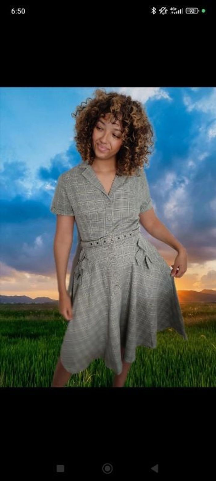 Superbe robe rétro de la marque Voodoo Vixen, à motif carreaux et coupe évasée pour un look élégant et intemporel. Modèle à manches courtes avec col chemise et boutons sur le devant. Ceinture assortie à la taille pour sublimer la silhouette. Neuve avec étiquette, jamais portée. Taille 38. Idéale pour un style vintage chic ou une touche pin-up moderne ! ✨ Envoi rapide et soigné ✨ N’hésitez pas à me contacter pour plus d’infos ! #pinup #retro #vintage #taille38 #robe38 #robetaille38 #robeacarreaux #noeuds #summer #robeavecceinture