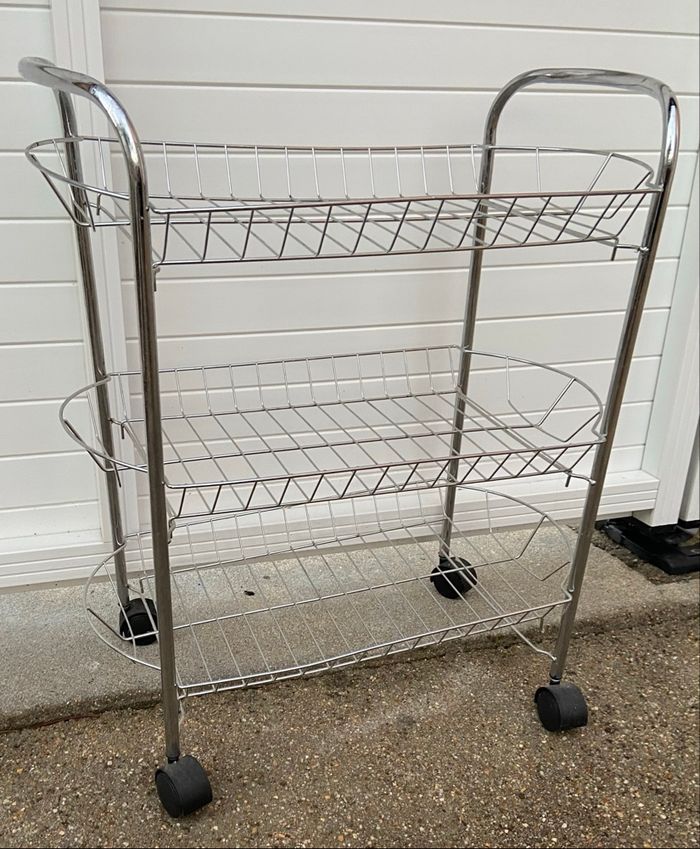 Petite desserte en alu bon état Du bas de la roulette à en haut 56cm 40cm de longueur et 27 cm de large