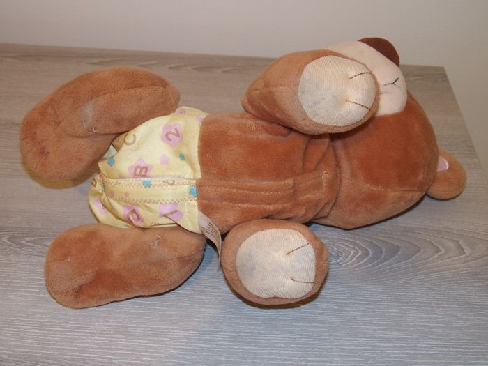 Bonjour ! Je suis un petit ourson qui a servi a 3 enfants. Maintenant que la petite dernière marche, je me retrouve tout seul sans personne pour jouer avec moi. Je suis un peu vieux et j'ai un peu d'arthrose visible sur mes genoux mais je fonctionne très bien, je marche, je parle et je fais de la lumière. Il faudra me donner un bon bain à mon arrivée mais sinon, je peux encore faire le bonheur d'un tout petit et l'aider dans son apprentissage du 4 pattes. A bientôt pour de nouvelles aventures ! #bouryquettejouets Description fabriquant : Avec son Ourson, 1,2,3 suis-moi, votre enfant part à l’aventure à quatre pattes ! L’ourson avance tout seul et encourage ainsi votre enfant à se déplacer avec lui. Il accompagne également Bébé dans sa découverte des formes, des couleurs et de la musique. Découvertes et Apprentissages : Bouton Ours : Appuyer sur le bouton Ours fait avancer l’ourson à quatre pattes. Couleurs, formes et chansons : Les boutons situés sur le dos de l’ourson permettent de découvrir les couleurs, les formes et des chansons. Coccinelle lumineuse : La lumière clignote au rythme des mélodies. Voir tous les jouets d'éveil. Inclus dans cette peluche interactive dès 9 mois : + 50 chansons, mélodies, sons et phrases. Apprentissages : Couleurs, Formes, Motricité globale, Vie quotidienne. Réglage du volume sonore et Arrêt automatique.