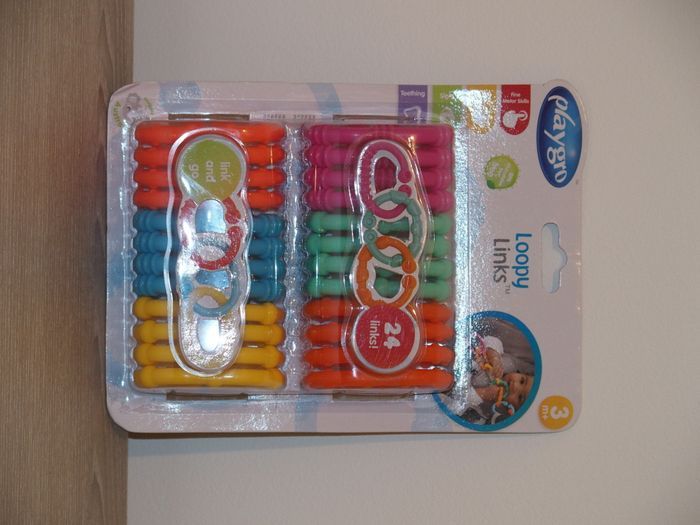 Anneaux pour attacher doudou ou sucette à la poussette mais aussi dans le parc ou en voiture. Boite neuve encore scellée. Boite de 24 anneaux. J'en ai également une deuxième neuve.