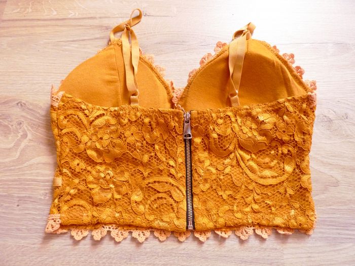 Debardeur femme bustier S 36 top dentelle jaune moutarde TBE - photo numéro 2