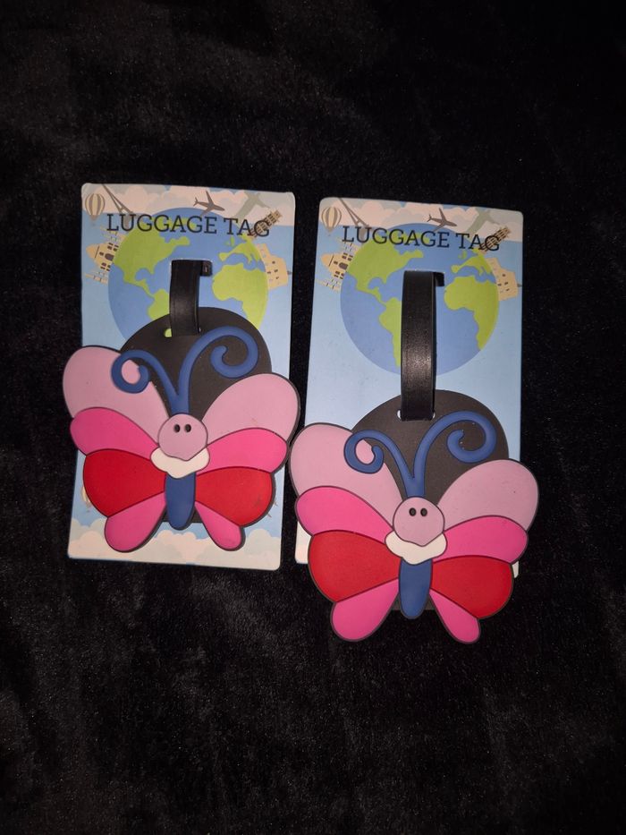 ☆Lot de deux étiquettes à bagages ☆Papillons ☆Neuves avec étiquettes