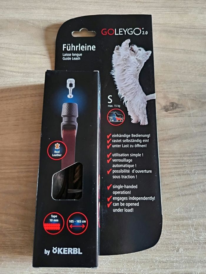 Laisse longue en cuir marron goleygo 2.0 taille S max 15 kg