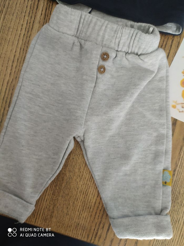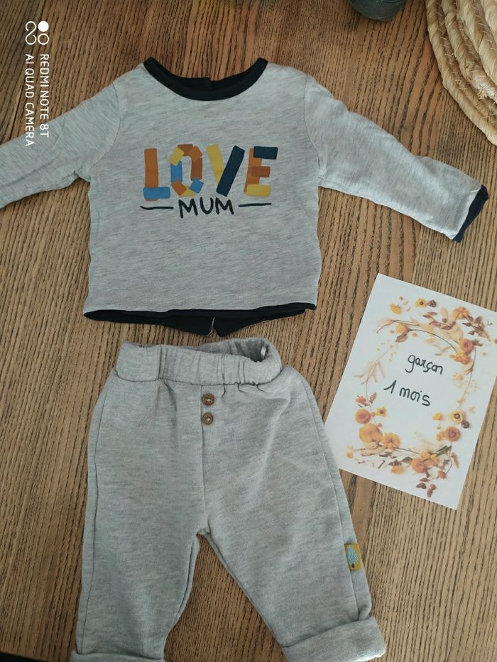 Ensemble 1 mois composé d'un haut manches longues réversible et pantalon souple gris