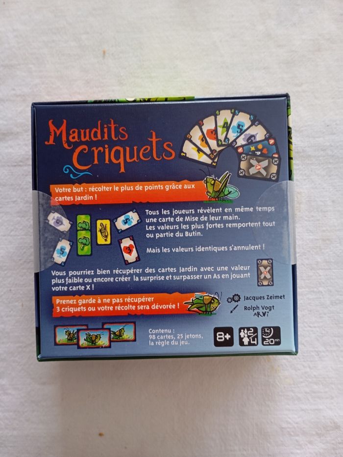 Jouez tous en même temps une carte de Mise pour récupérer les cartes Jardin avec des fruits, des légumes ou des criquets. Si des cartes sont identiques, elles s’annulent. L’As est la carte la plus forte, elle remporte toutes les cartes en jeu. X est la carte la plus faible, elle ne remporte aucune carte. Sauf contre un As ! C’est alors le X qui récupère le Butin. Au bout de 3 cartes légumes identiques dans sa réserve, on récupère 1 jeton Point. Mais si on accumule 3 criquets, tous les légumes sont dévorés ! Le joueur avec le plus de points en fin de partie gagne !