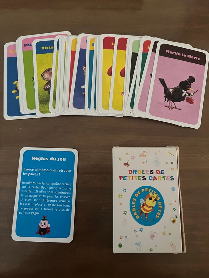 Jeu cortex neuf Jeu drôle de petites bêtes ( memory ) Jeu des 7 valises ( jeu sept familles ) D’autres jeux de cartes en vente dans mon dressing, si vous êtes intéressé par plusieurs articles n’hésitez pas à me demander pour que je fasse une annonce avec les articles choisis. Nous discuterons du prix et je mettrai format petit colis afin de réduire les frais d’envoi.