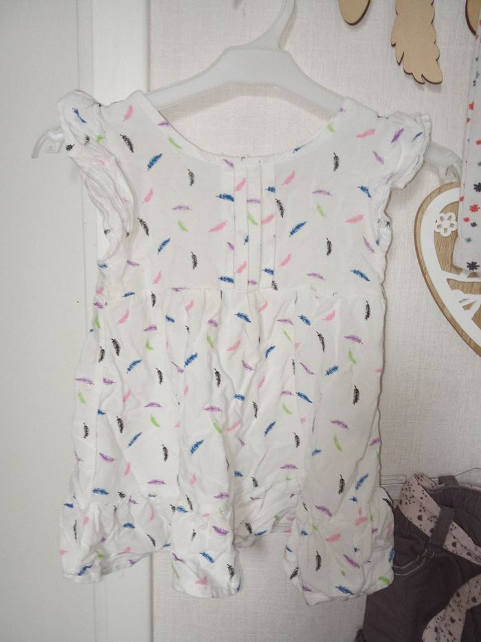Lot composé d'une robe blanche motif plumes multicolores marque chicaprie, un legging blanc motif fleurs multicolores mots d'enfants et un pantalon kimbaloo le tout en 9 mois. Trace d'utilisation car bien portés mais bon état général cependant. De nombreux autres lot vts bébé fille également à vendre ds mon dressing et réduction activée