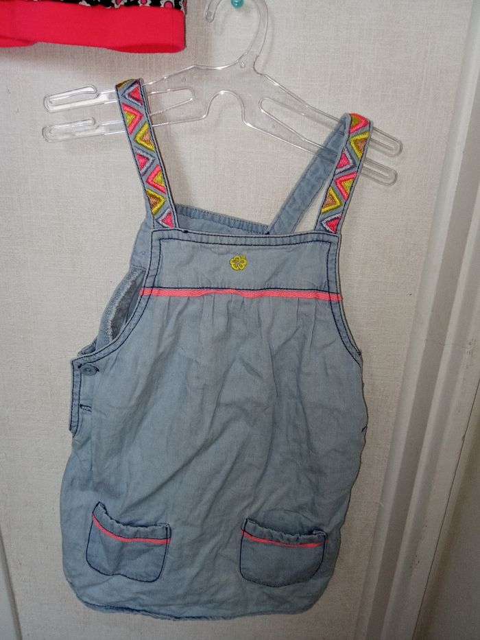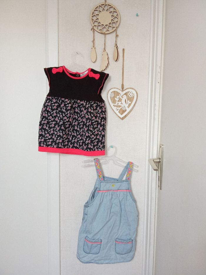 Lot composé d'une robe noire et rose marque kitchoun et une autre à bretelles bleu clair et couleur fluo sur les bretelles marque pommette.