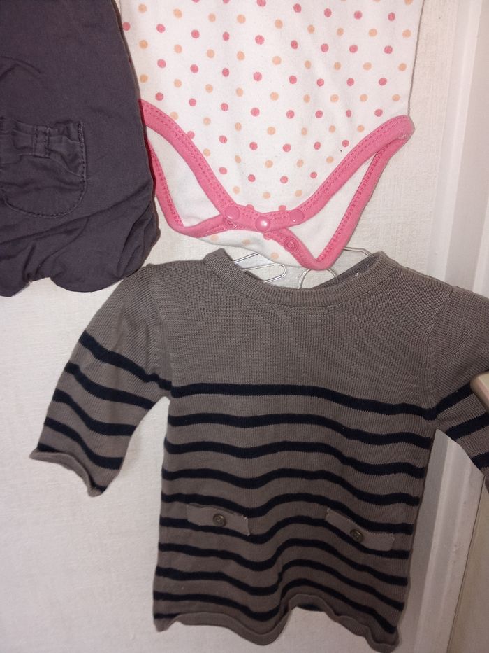 Lot mi saison bébé fille 1 mois kitchoun 54 cm, robe, body,  gilet - photo numéro 3