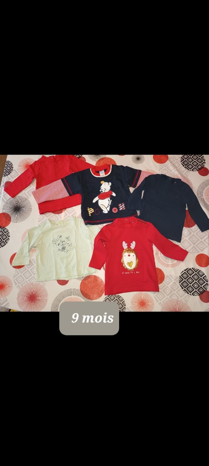 Lot 5 t-shirts manches longues 👦 taille 9 mois