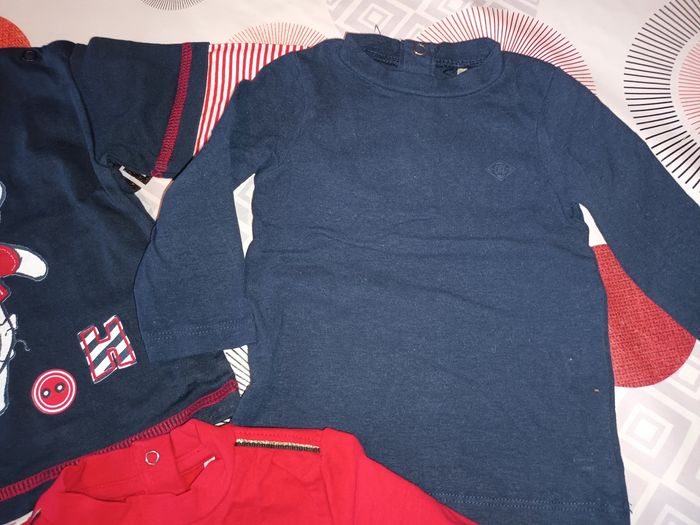 Lot 5 t-shirts manches longues Taille 9 mois Marque : 3 Orchestra, 1 brioche, 1 Disney Couleur : bleu rouge #mon9moisgarsemilie Remise sur les lots activées