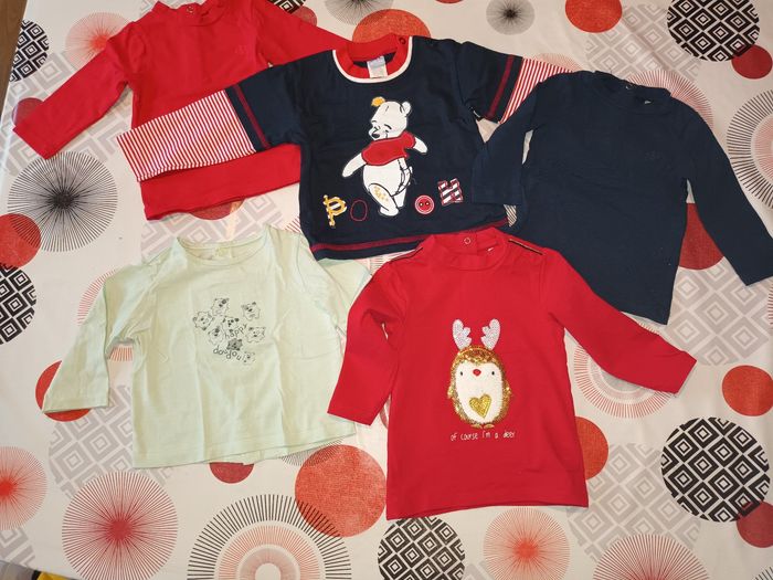 Lot 5 t-shirts manches longues 👦 taille 9 mois - photo numéro 1