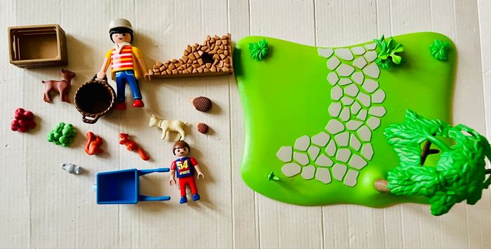 Playmobil Cueillette de pommes 2 figurines, 2 chèvres, 2 écureuils, 2 hérissons, 1 souris, 1 brouette, 1 cagette, 1 panière, 2 tas de pommes Pas de boîte