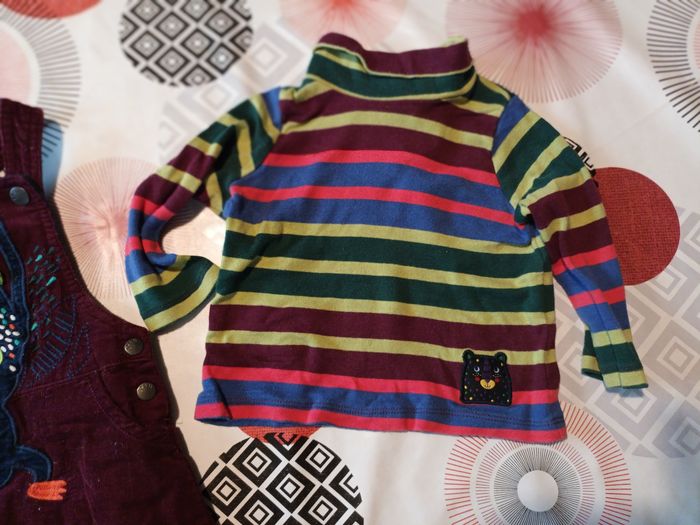 Ensemble salopette velour chaude et sous pull Taille 9 mois Marque : Dpam Couleur : bordeaux vert #mon9moisgarsemilie Remise sur les lots activées