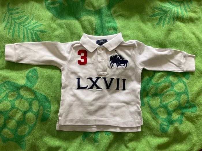 Polo Ralph Lauren blanc 9 mois manches longues - photo numéro 1