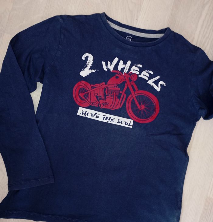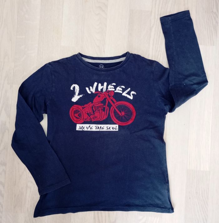 Tee-shirt bleu marine motif moto Marque : Tex T. 9-10 ans Bon état général