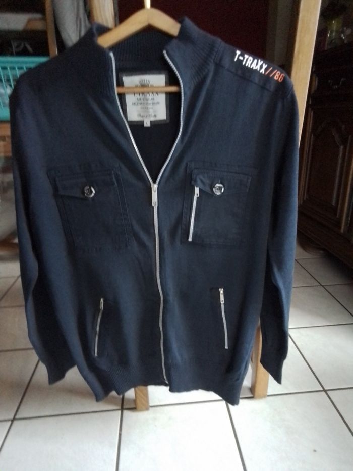 Pull cardigan homme en très bonne état couleur bleu marine taille l porté une fois