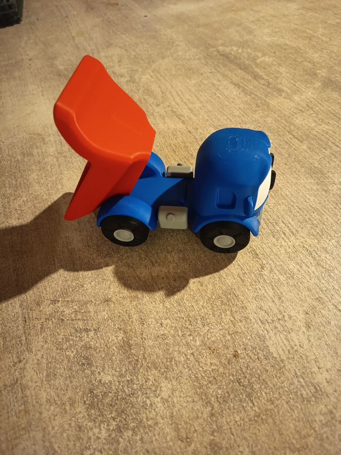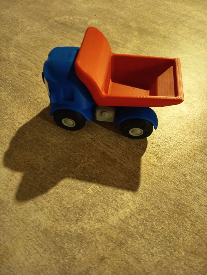 Léo le camion curieux avec benne amovible en impression 3d. 📏 Dimensions: 10 cm (hauteur) × 15 cm (longueur) × 9 cm ( largeur) 🖌️ Impression 3d en PLA+
