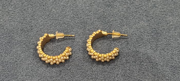 Demi créoles dorées avec petites perles nacrées - photo numéro 1
