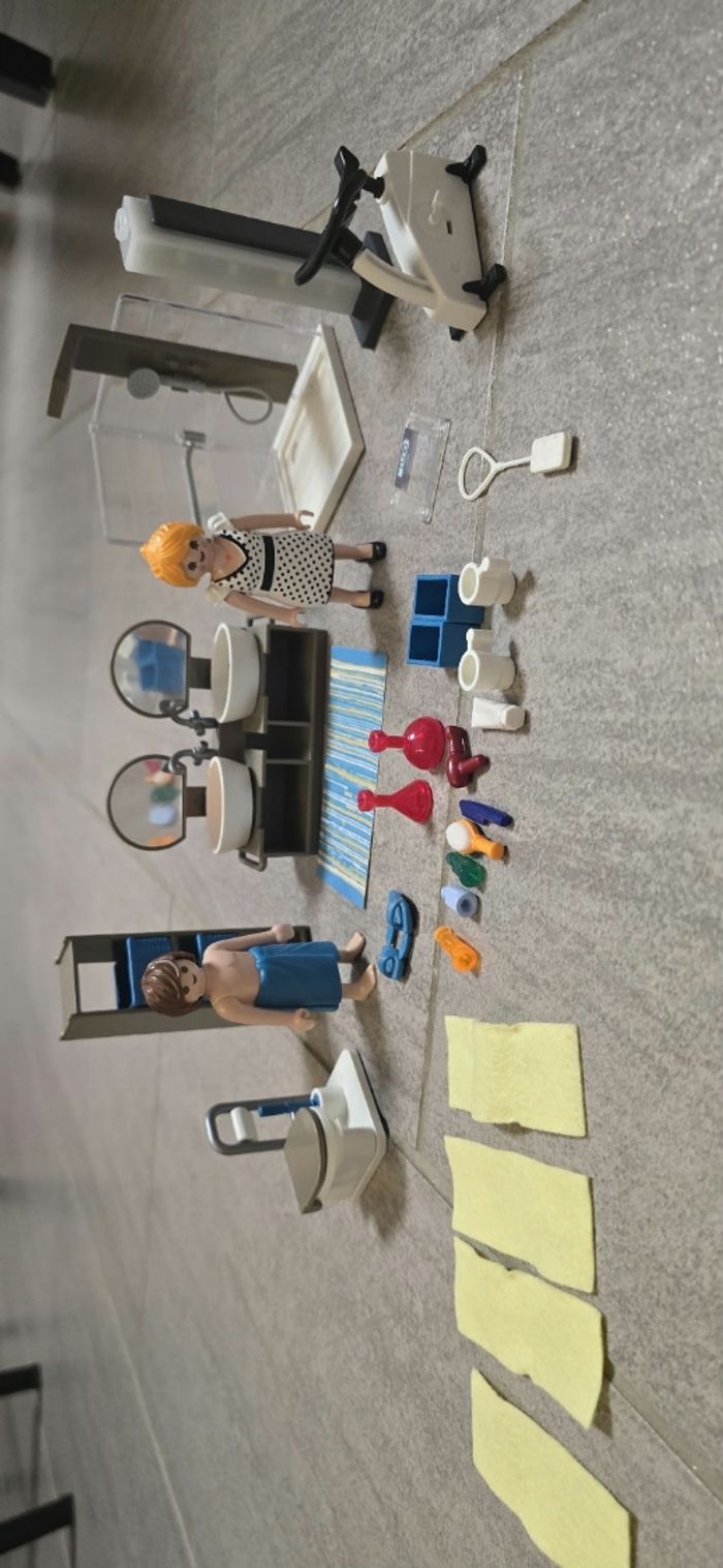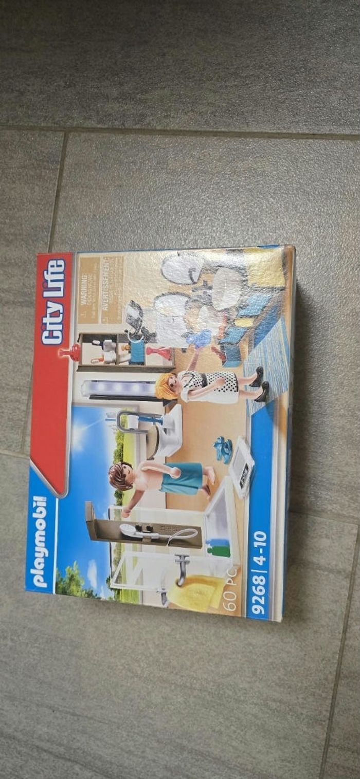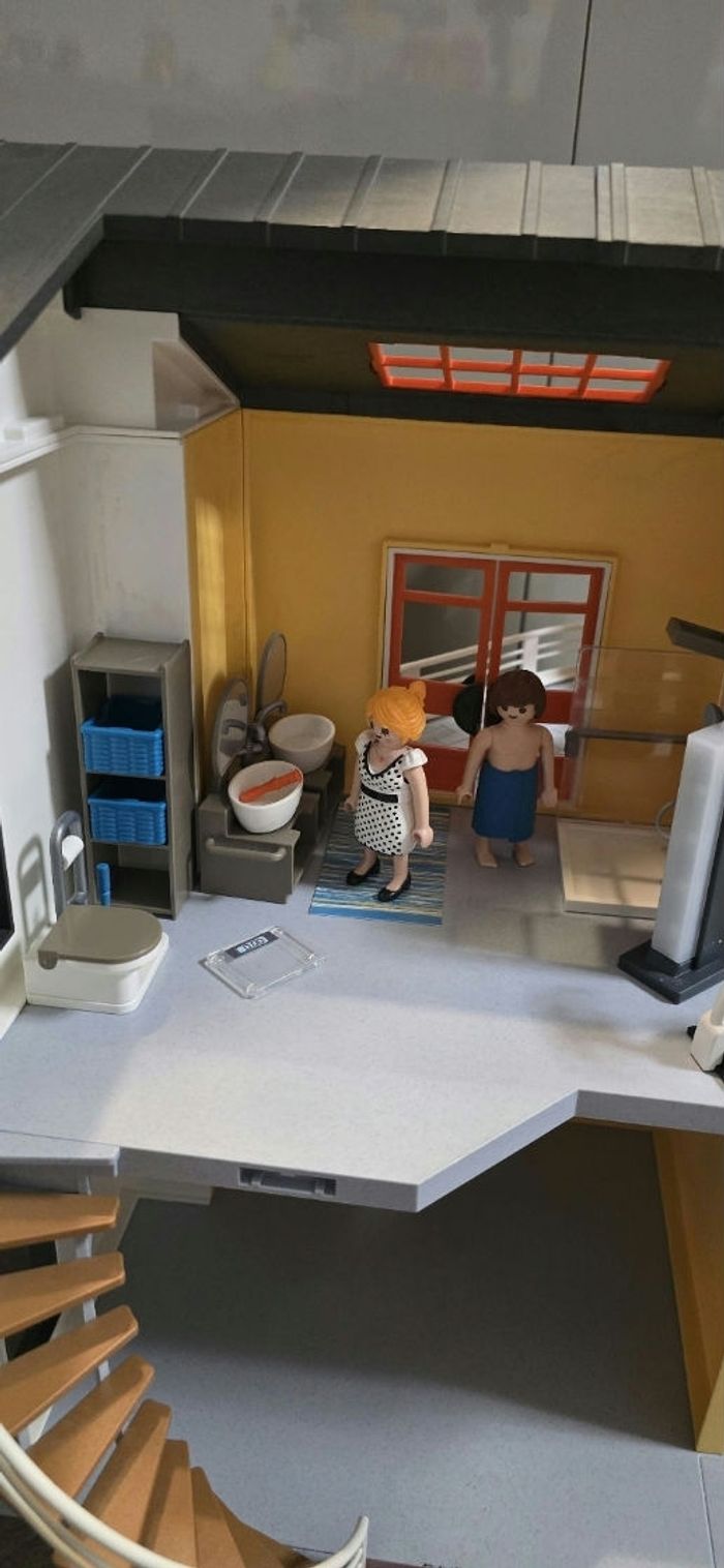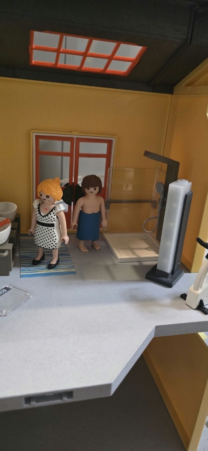 Playmobil salle de bain avec douche à l'italienne. Contient une colonne lumineuse qui fonctionne réellement. Neuf, juste exposé. Aucun accessoire manquant