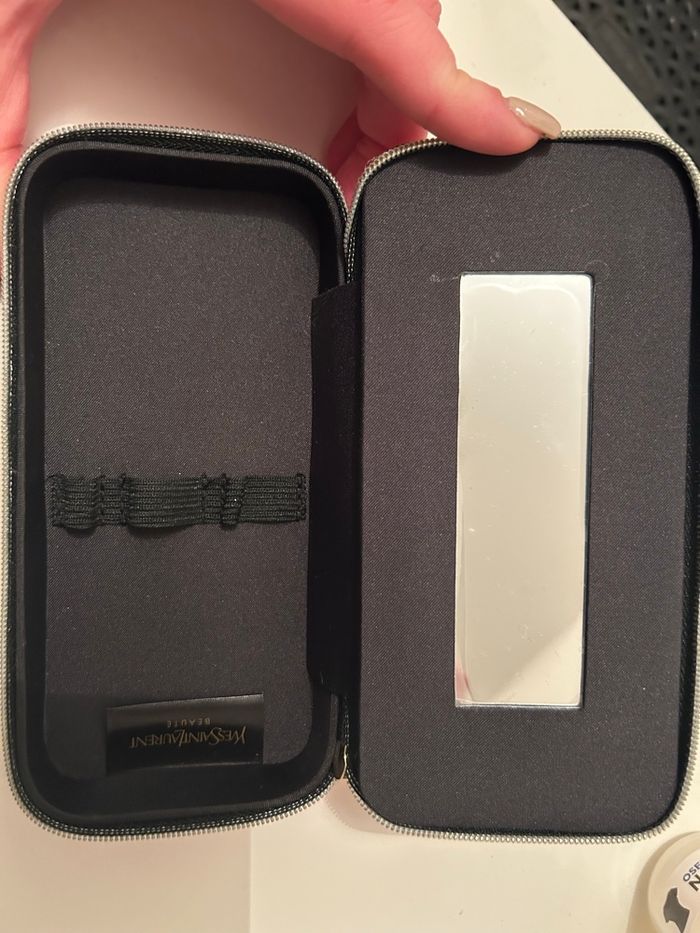 💋 Intérieur avec miroir intégré + emplacements pour pinceaux.