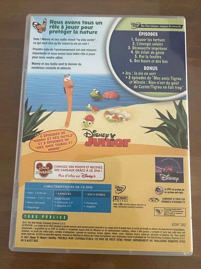 DVD Disney Manny et ses outils : à l'écoute de la planète (6 épisodes + bonus - 1h08). Regardé mais en excellent état. D’autres DVD en vente dans mon dressing, n’hésitez pas à faire un lot.