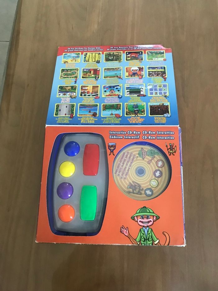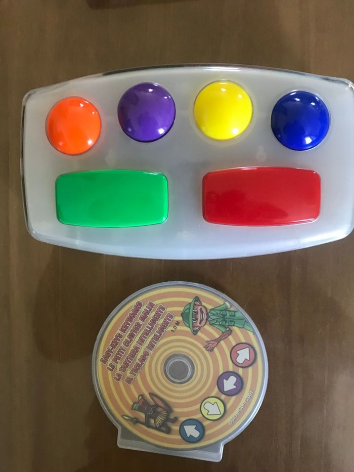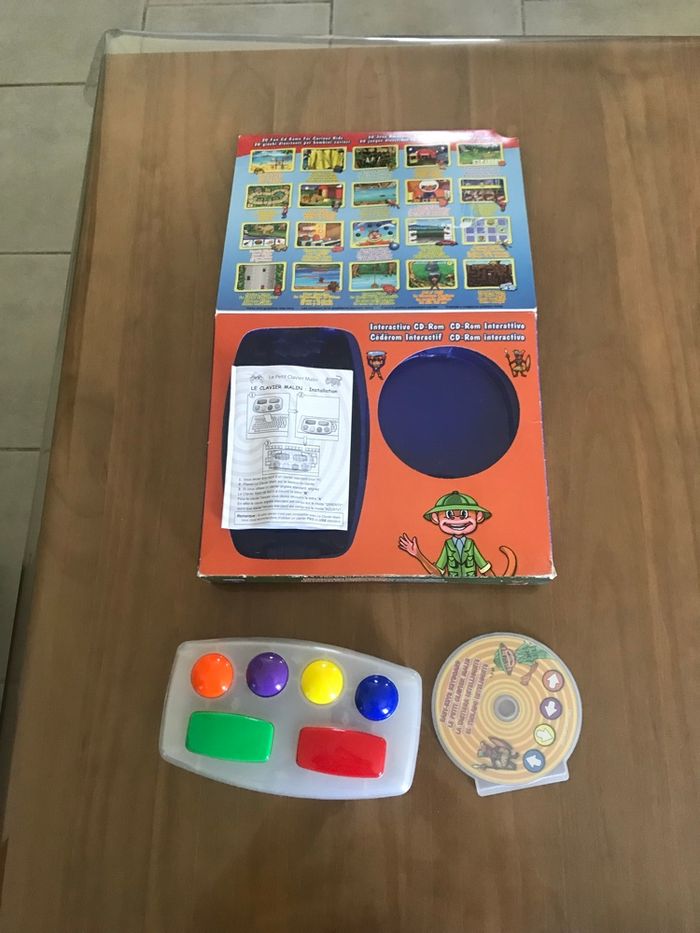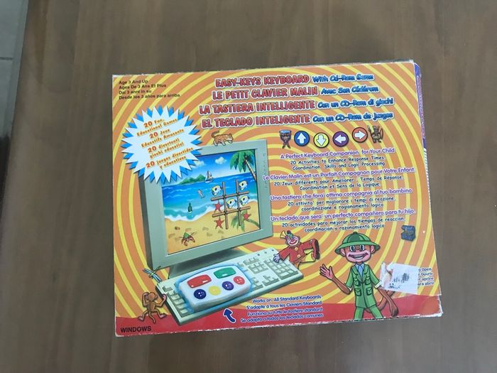 Clavier pour enfant à partir de 3 ans adaptable sur un clavier adulte avec son CD-Rom qui contient 12 jeux pour découvrir un ordinateur. Le clavier et le Cd sont neufs mais la boîte est abîmée .
