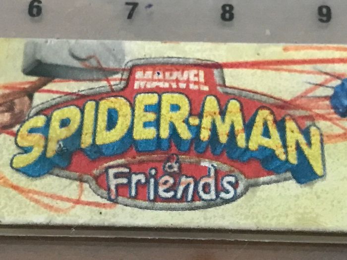 Règle avec du crayon dessus. Nombreux et divers articles Spiderman en vente dans mon dressing .