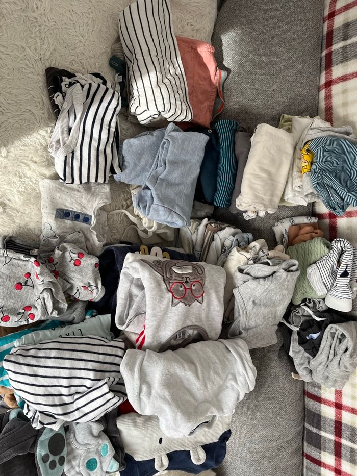 Je vends ce lot entier de un mois qui comprend 21 pyjamas épais,Cinq pyjamas fins, deux Combies short, un T-shirt, trois pull léger, un gilet fin et deux un peu plus épais. Deux ensembles, une chemise à manches longue Sept bodys manches courtes, 25body manches longue et 10 pantalons