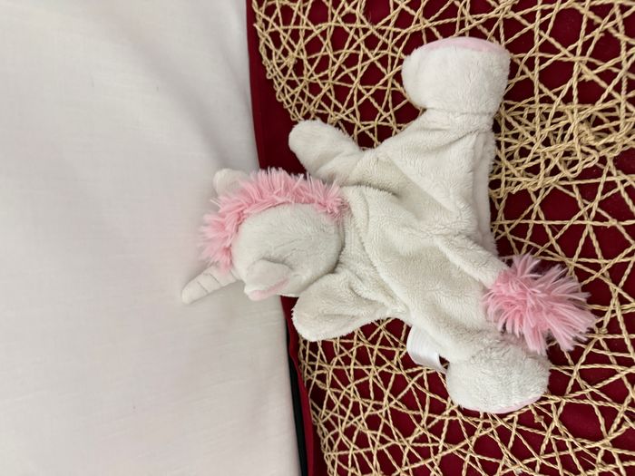 Doudou marionnette licorne TEX Carrefour blanc rose fleur étoile - photo numéro 4
