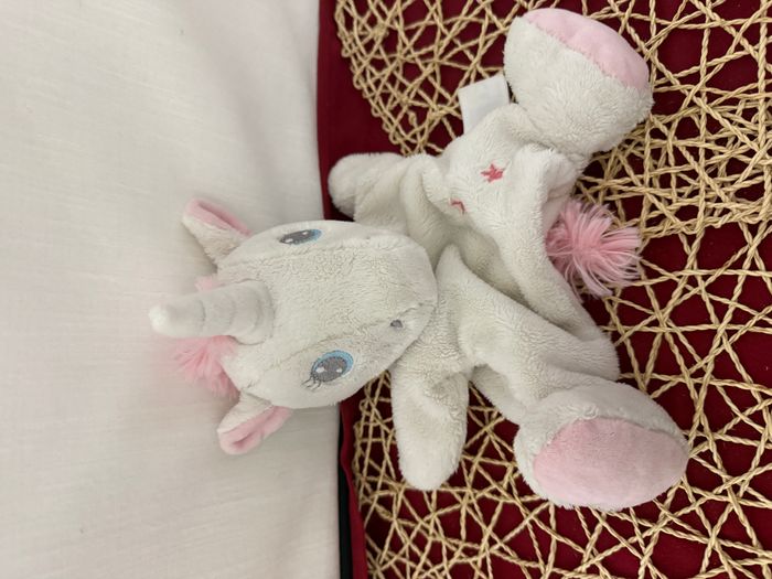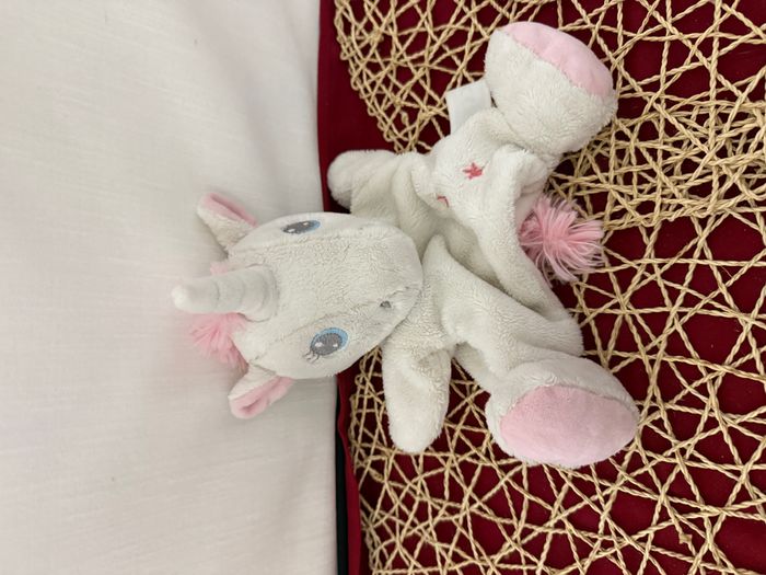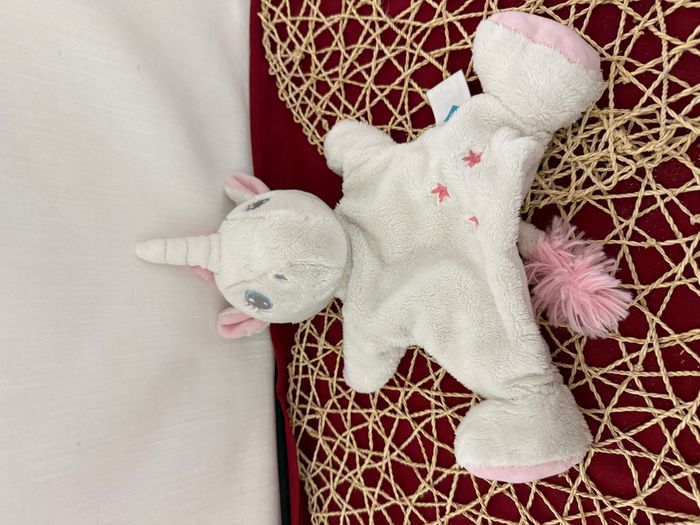 Doudou marionnette licorne TEX Carrefour blanc rose fleur étoile - photo numéro 1