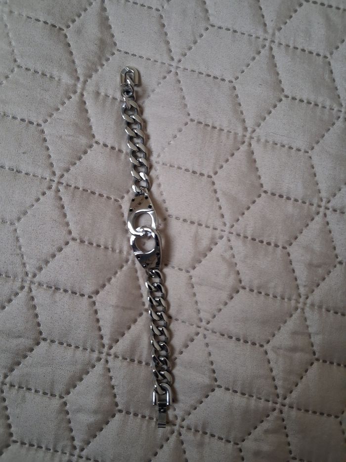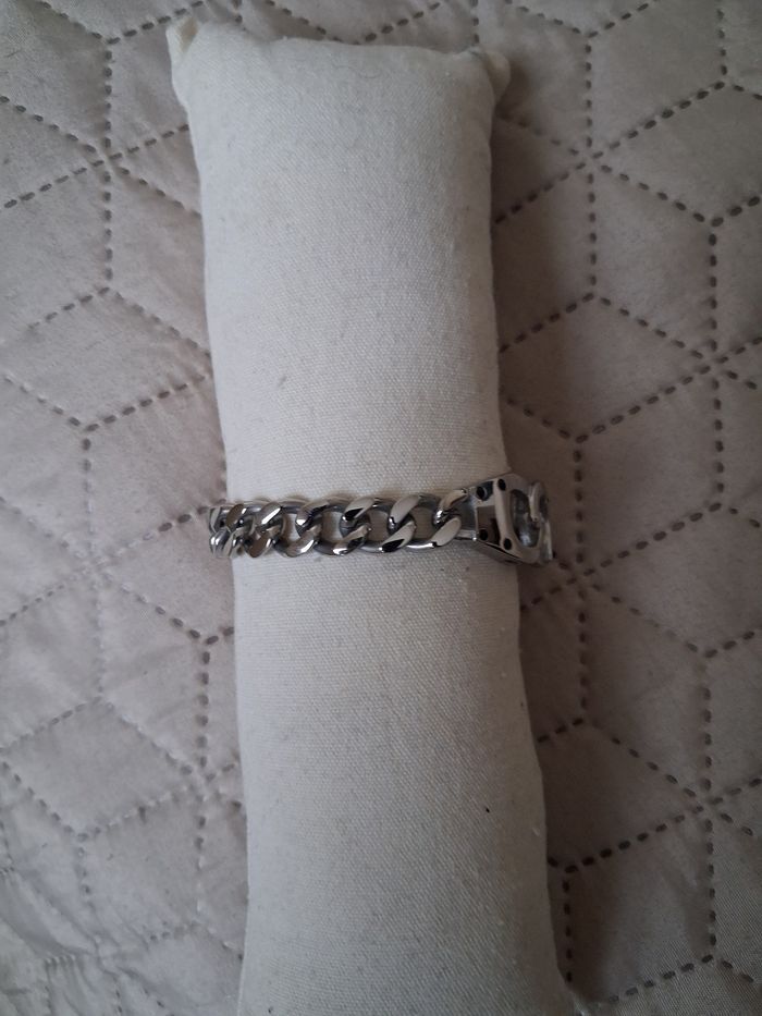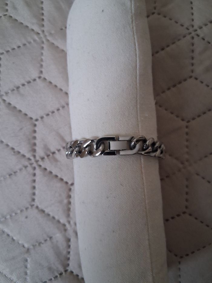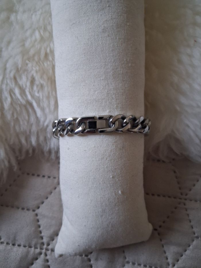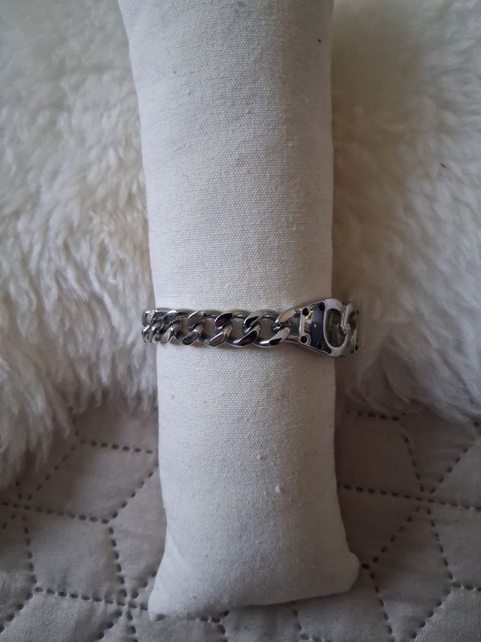Élégant bracelet menotte homme en acier inoxydable. Neuf sans etiquette. Prix Neuf 24€90. Marque bijoux de mode. Chaîne large et brillante. Longueur ouvert 20,5 cm .envoi rapide et soigné