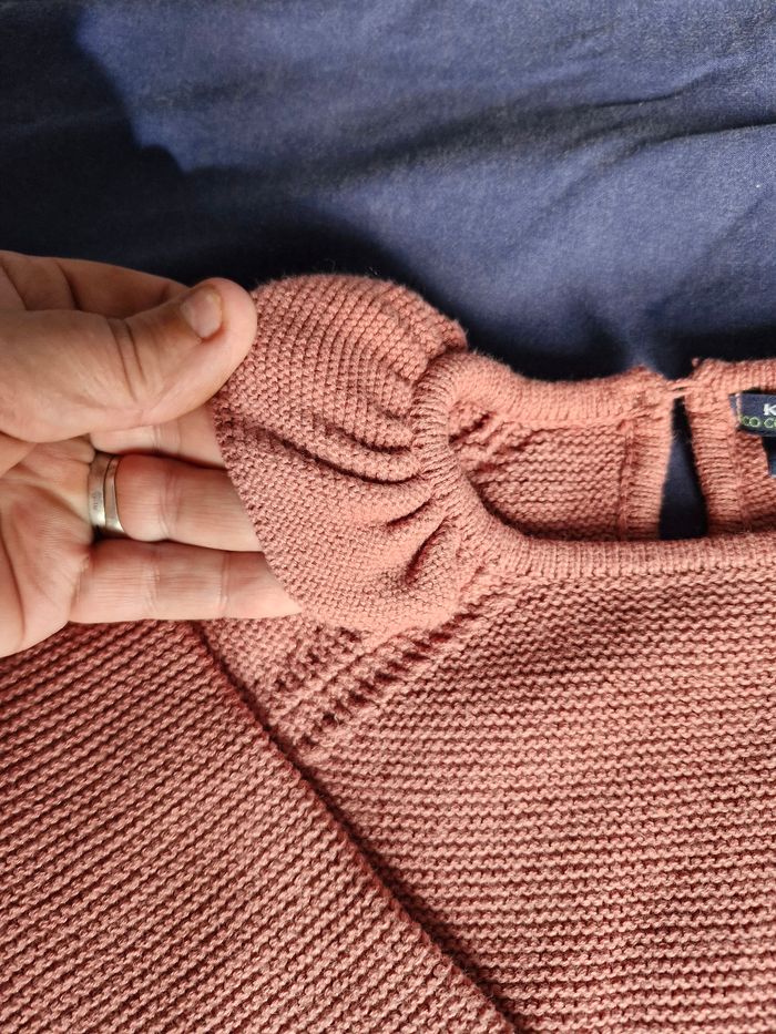 🌸Très joli pull Manches longues, col rond à collerette ⚕️Fermeture du col par bouton à l'arrière ✨️Joli point mousse effet fait main 🩷Couleur vieux rose 🌟 Marque kiabi 🏷 Taille 18mois (77-82cms) 📌 Mesures sur tissu extensible Aisselles de 30cms à plat à 37cms en tirant Hauteur 35cms 📷Bien regarder les photos pour le détail 🚨Petit défaut : Je n'ai pas remarqué d'anomalie 💲Faites des économies en créant un lot pour profiter des réductions actives dès 2 articles #naya59199bébé #naya59199fille2ans #naya59199fille18mois #naya59199pull #naya59199pullfille