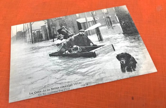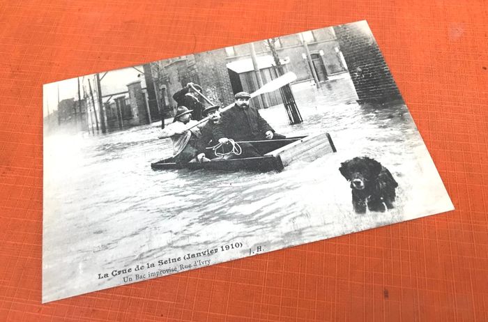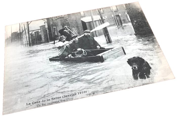 Carte postale ancienne Paris (75) La crue de la Seine 30 Janvier 1910 Un bac improvisé, rue d' Ivry