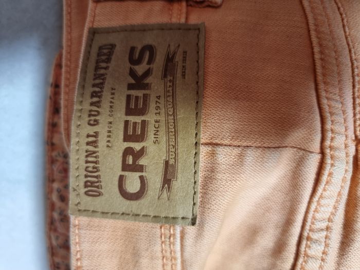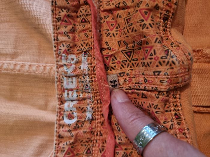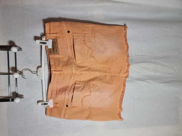 Mini-jupe en jean femme Creeks corail taille 44. Une tâche à peine visible à l'arrière (voir photo). En bon état. Envoi rapide et soigné. Négociable.
