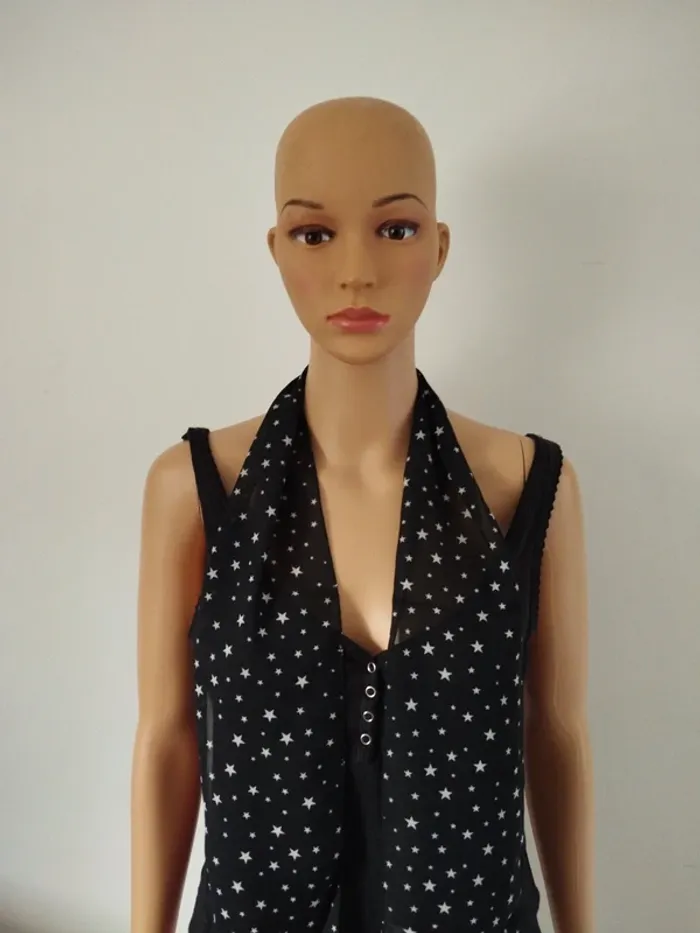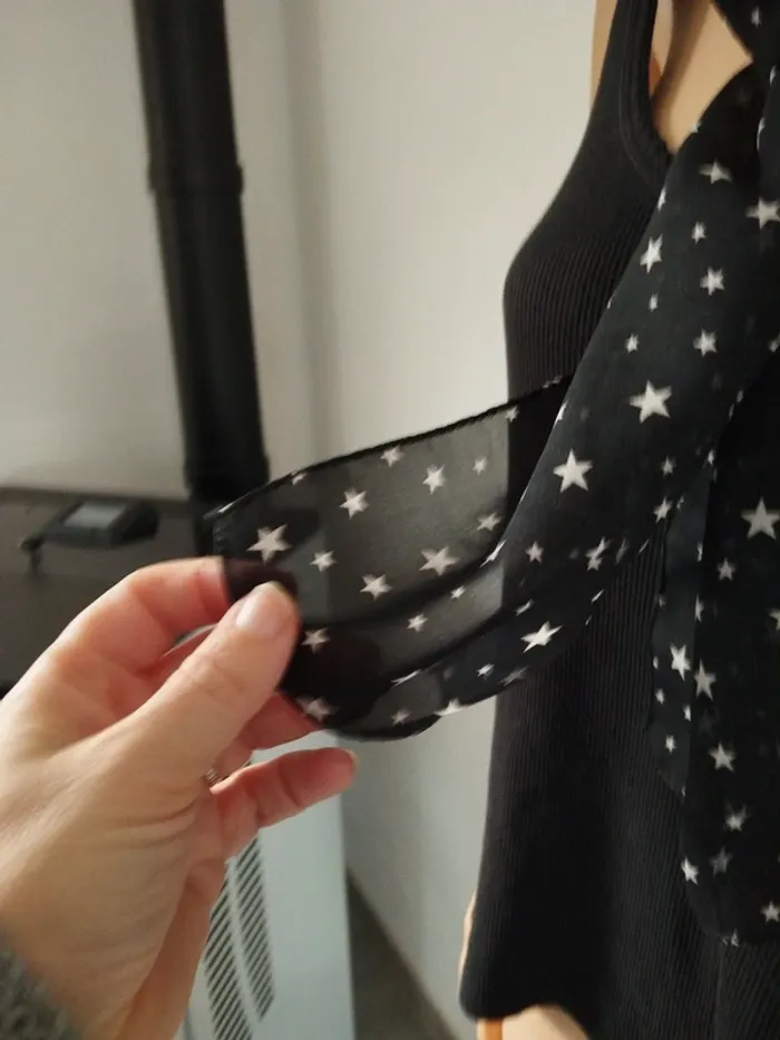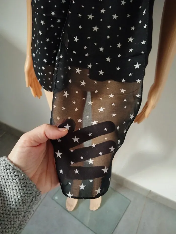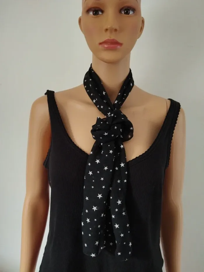 Foulard écharpe fine noire avec étoiles blanche 150x15 cm femme
