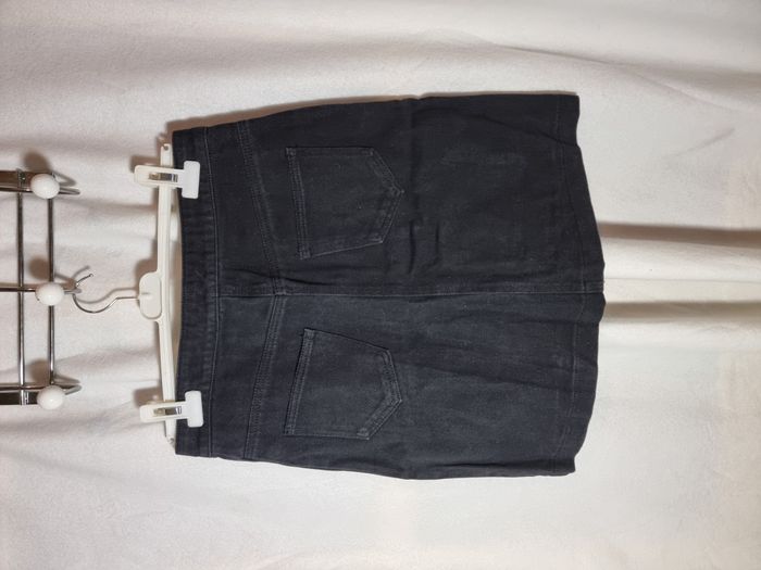 Mini-jupe taille haute en jean femme Zeeman noire taille 36. Avec un bouton de rechange. Neuf sans étiquettes. Envoi rapide et soigné. Négociable.