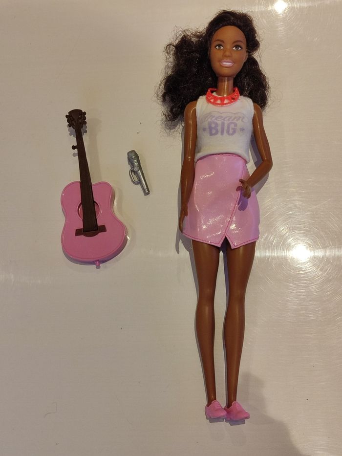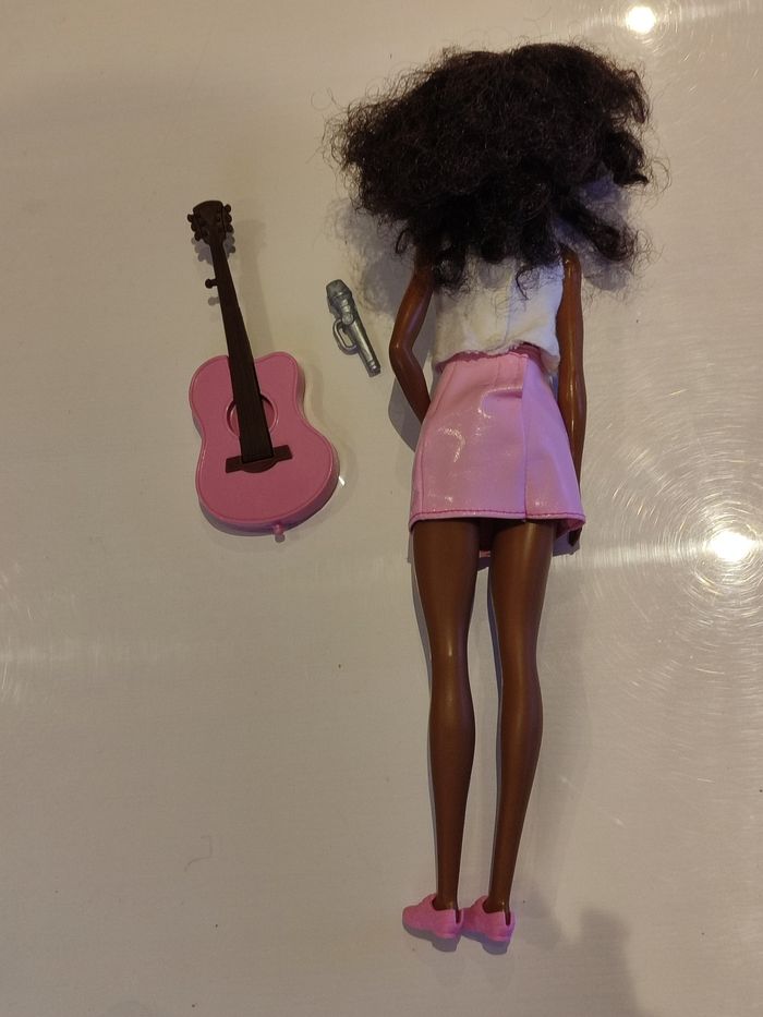 Poupée barbie avec sa guitare 🎸 et le micro. Les cheveux commencent à s'emmeller, mais l' ensemble reste en très bon état. N' hésitez pas à visiter mon dressing
