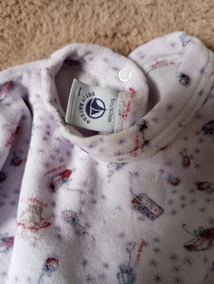 Pyjama velours, taille 6 mois, marque Petit bateau. Très bon état.
