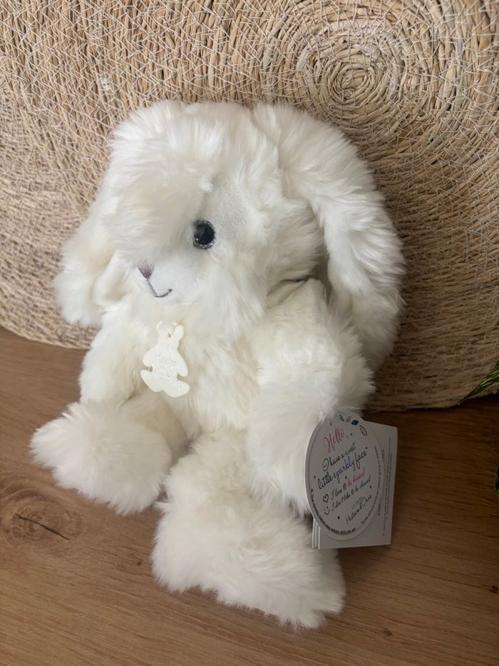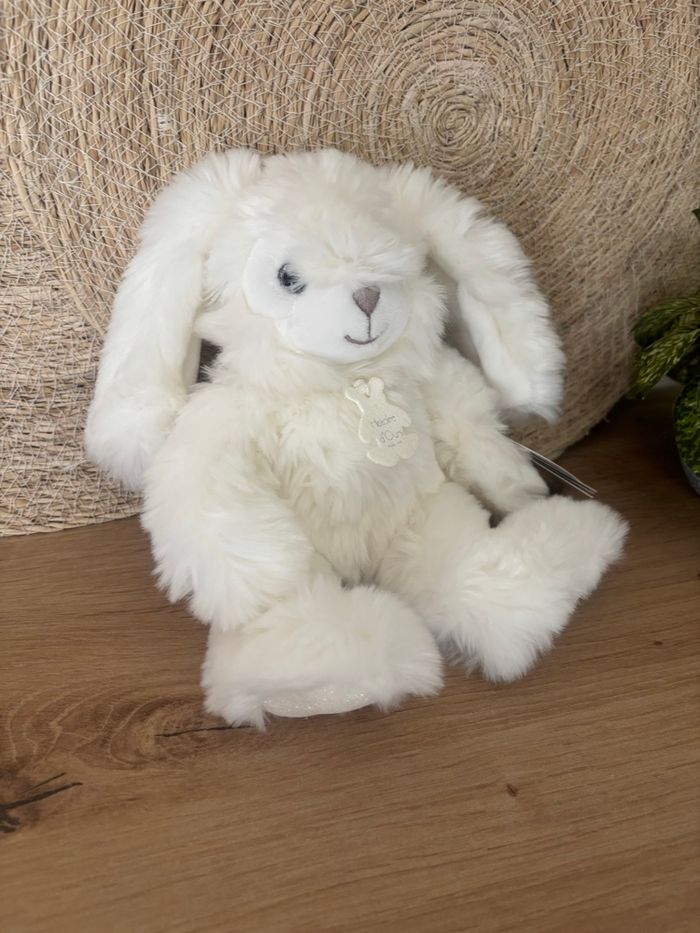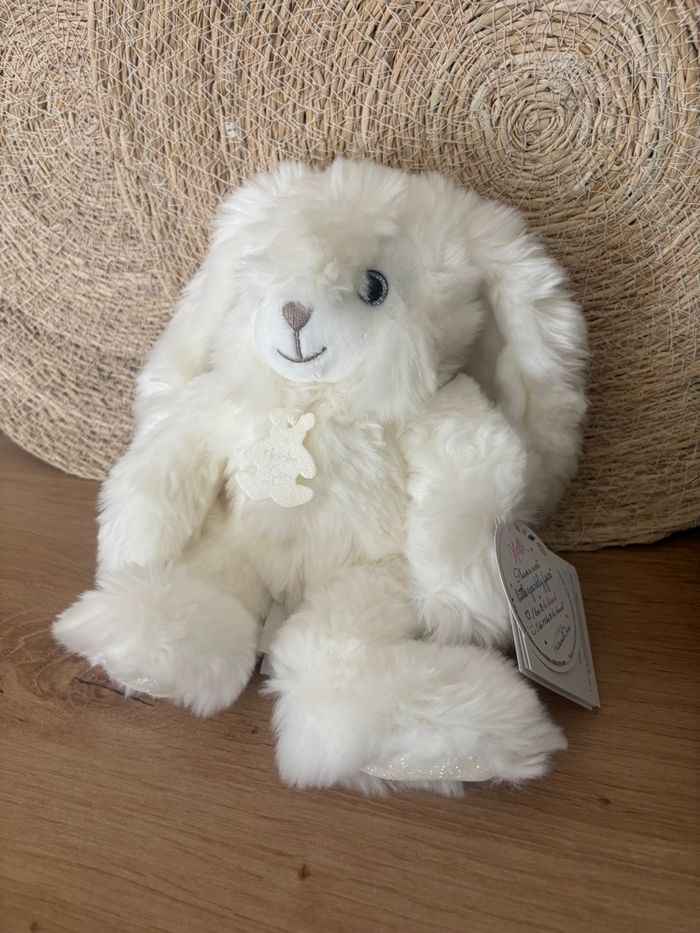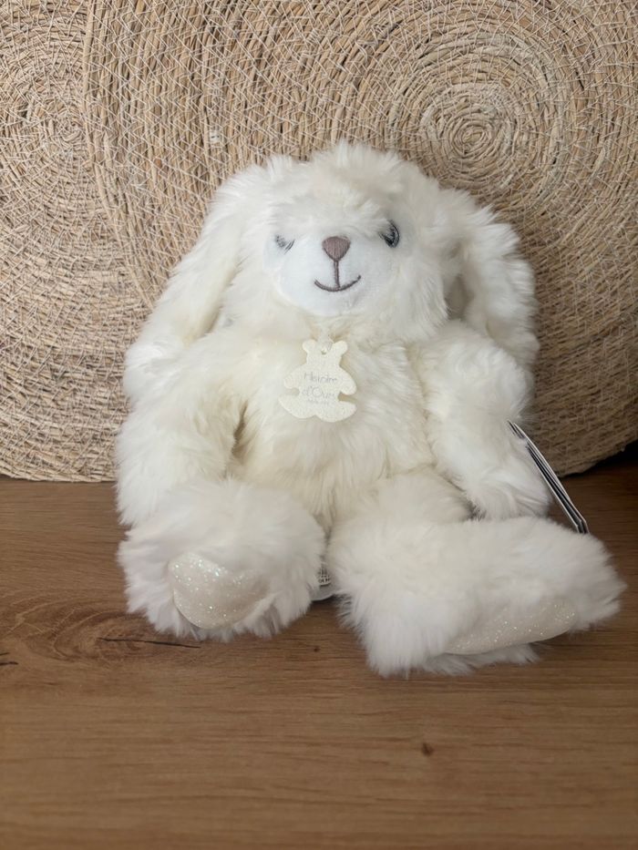 Neuf doudou lapin pimpant blanc yeux brillant histoire d ours